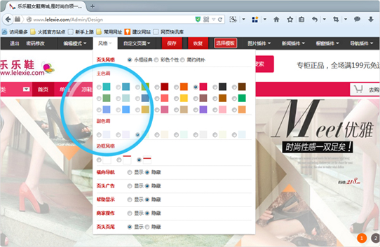 从网站的主色调、副色调、边框风格到页头风格、导航、广告显示等信息全部都可以自由编辑,可以做到完全独一无二的网站;编辑后立即显示,所见即所得。